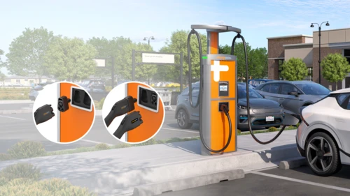 Save on costs and simplify site planning with NACS (Tesla) and CCS1/J1772 connectors at each port.
