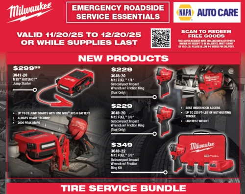 NAPA Auto Parts and Milwaukee® Tool and have partnered to bring a limited-time promotion packed with value for AAA roadside service providers. From now until December 20, 2025, customers can access exclusive deals on Emergency Roadside Service essentials, including several newly released Milwaukee products.
