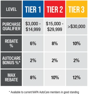 * Must be located within NAPA store delivery area. ** AAA Preferred Service Providers can earn up to 12 percent quarterly rebates on qualifying parts, tools and equipment. Must be enrolled in the AAA/NAPA Quality Parts Program. Minimum purchase requirement of $3,000 per quarter.